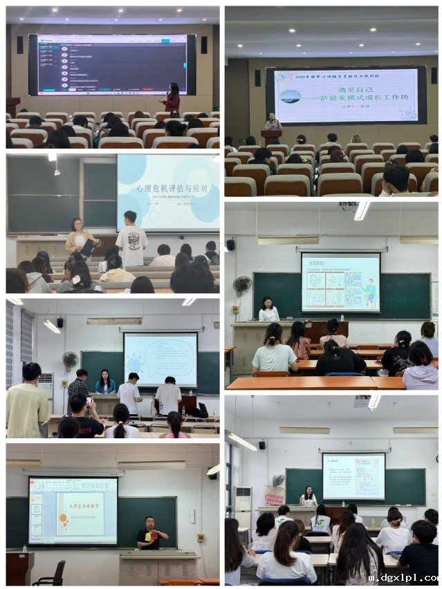 培训首日,心理中心封静老师主持了开班仪式,并作“朋辈互助沟通技巧暨常见问题操作实务指导”专题讲授。封静结合丰富案例,深入讲解朋辈沟通技巧,并演示了常见问题及处理方法。第二讲由心理中心张婕老师带领学员开启萨提亚模式的自我探索之旅,通过“冰山理论”解析情绪与行为的内在逻辑,并借助小组互动等形式,引导学员觉察自身沟通模式与心理资源。第三讲中,心理中心陈静老师聚焦校园高危心理问题评估与应对,课程结合真实案例,详细讲解危机信号的辨别要点、干预流程及伦理规范,并通过角色扮演强化学员的应急处理能力。第四讲培训特邀陈璐、余波、伍莉、陈晓婧四位老师授课,他们从自我探索、生命教育等主题,采用讲授和团体互动相结合的形式,为学员们提供了多维度的心理成长体验。