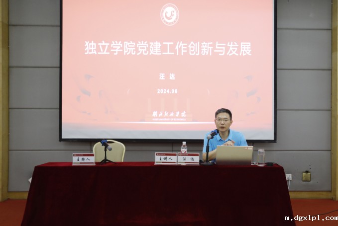 本网讯(通讯员 邢宇)6月14日下午,湖北经济学院党委副书记汪达受邀在大学生活动中心三号报告厅为我院作“独立学院党建工作创新与发展”专题辅导报告。院领导陈昀、邓志华、杨宏斌、牛睿军、陈瑶,全体中层干部、学院第一期青干班全体学员及全体辅导员共同参加。院党委副书记、副院长杨宏斌主持。
