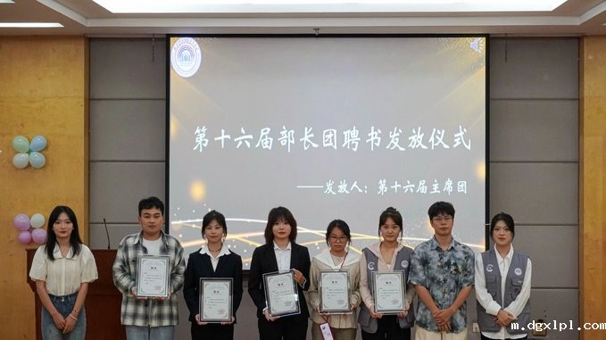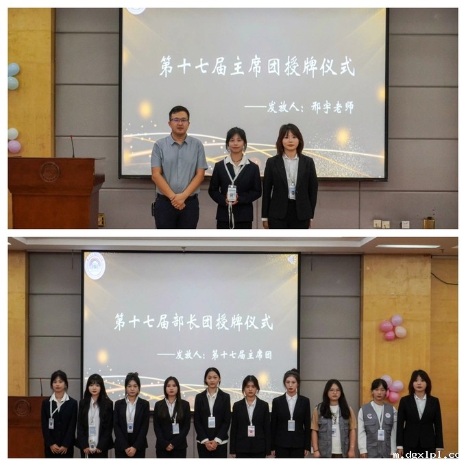 刘乐乐、邢宇两位老师为第十六届主席团成员颁发聘书,第十六届主席团成员为各部门部长颁发聘书。