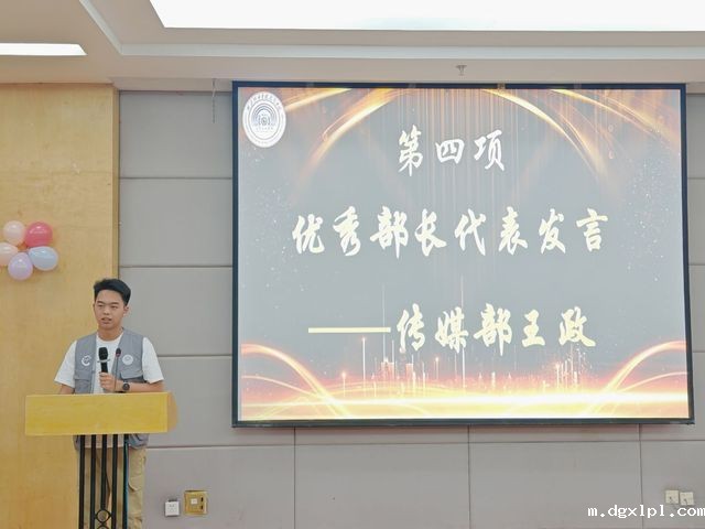 优秀部长代表发言环节,传媒部部长王政上台发言,真诚地分享了带领部门一年来的实践心得。他不仅总结工作亮点与经验,也坦诚地剖析存在的不足与可提升空间,并提出建设性的优化建议。