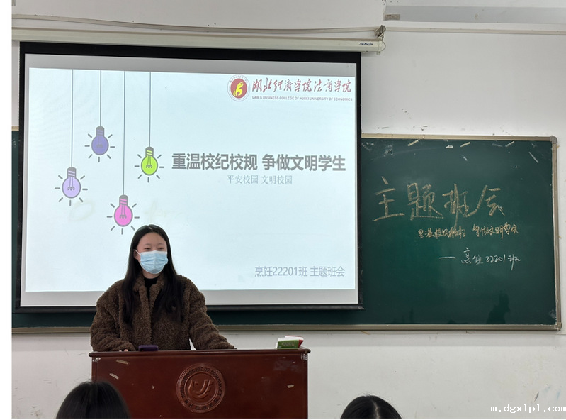 本网讯(通讯员 陈与进)为了进一步提升广大学生遵守校纪校规的主动性和自觉性,为“平安校园”、“文明校园”创建打下坚实基础,旅游系历时半个月组织各班召开了“重温校纪校规、争做文明学生”的主题班会。