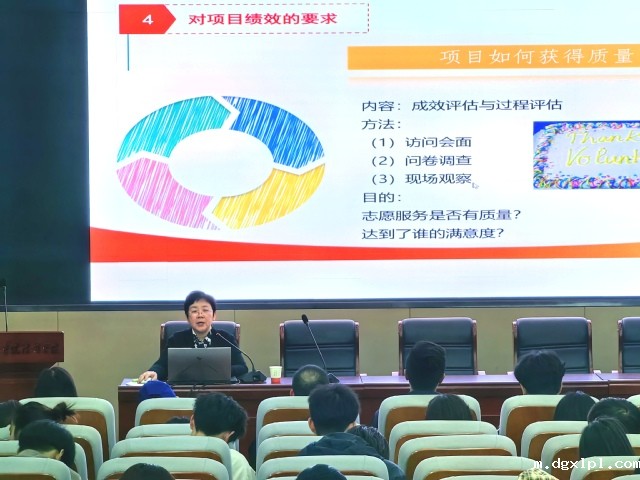 本网讯(通讯员 方楠)3月27日晚上,我院特邀武汉科技大学法学与经济学院李莉教授在逸夫楼101报告厅作“志愿项目策划与实施”专题讲座,院团委副书记周志,各系团总支书记、副书记,师生代表近200人参会学习。