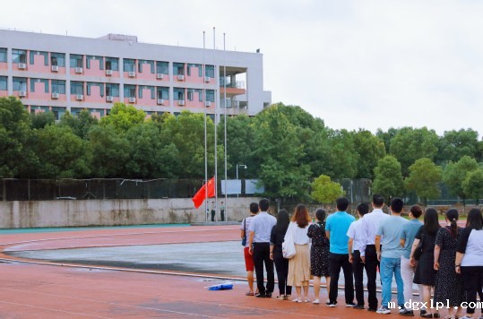 升旗仪式7点准时开始,伴随着雄壮有力的《义勇军进行曲》,五星红旗冉冉升起,全体师生高唱国歌,行注目礼。