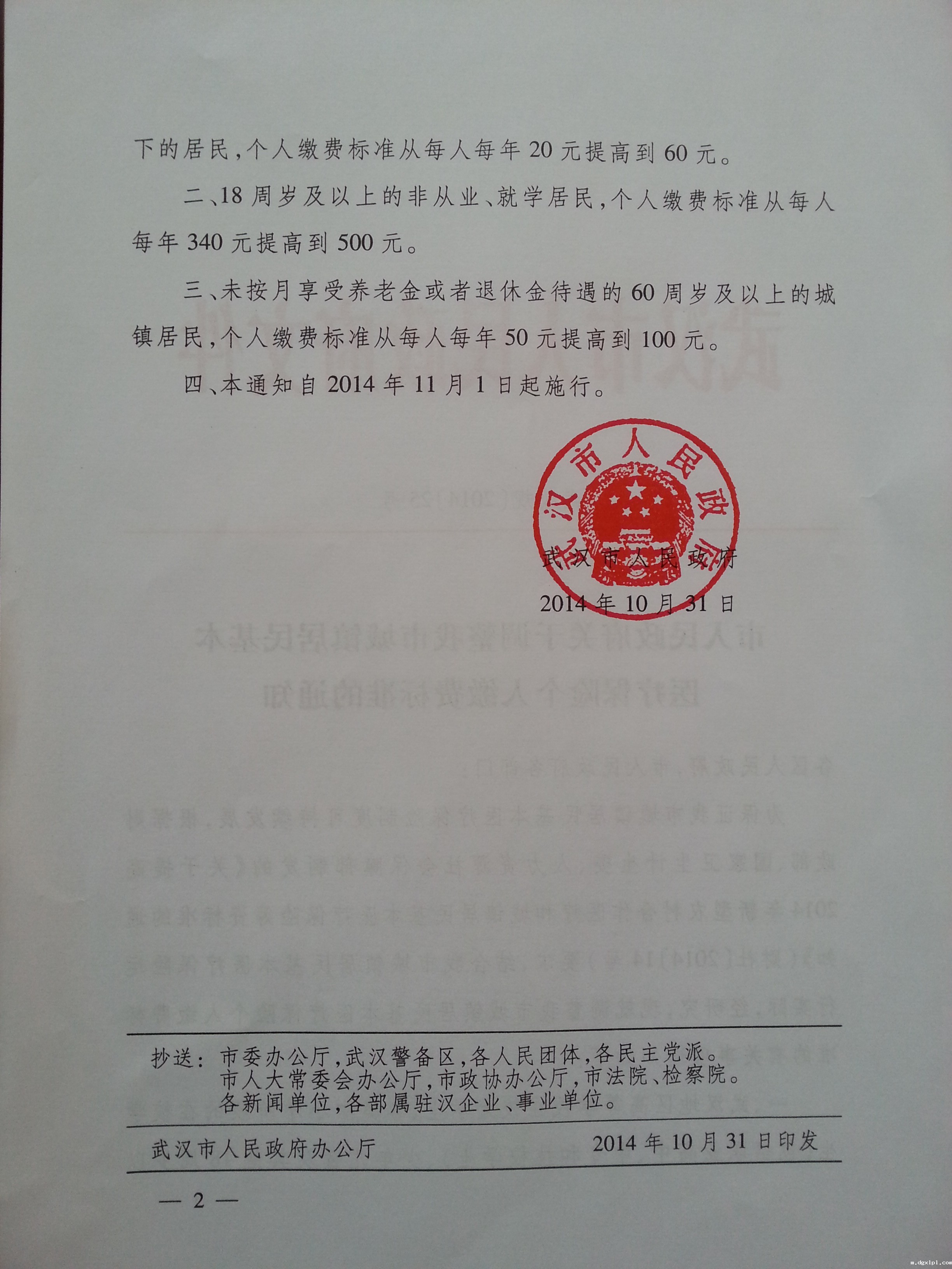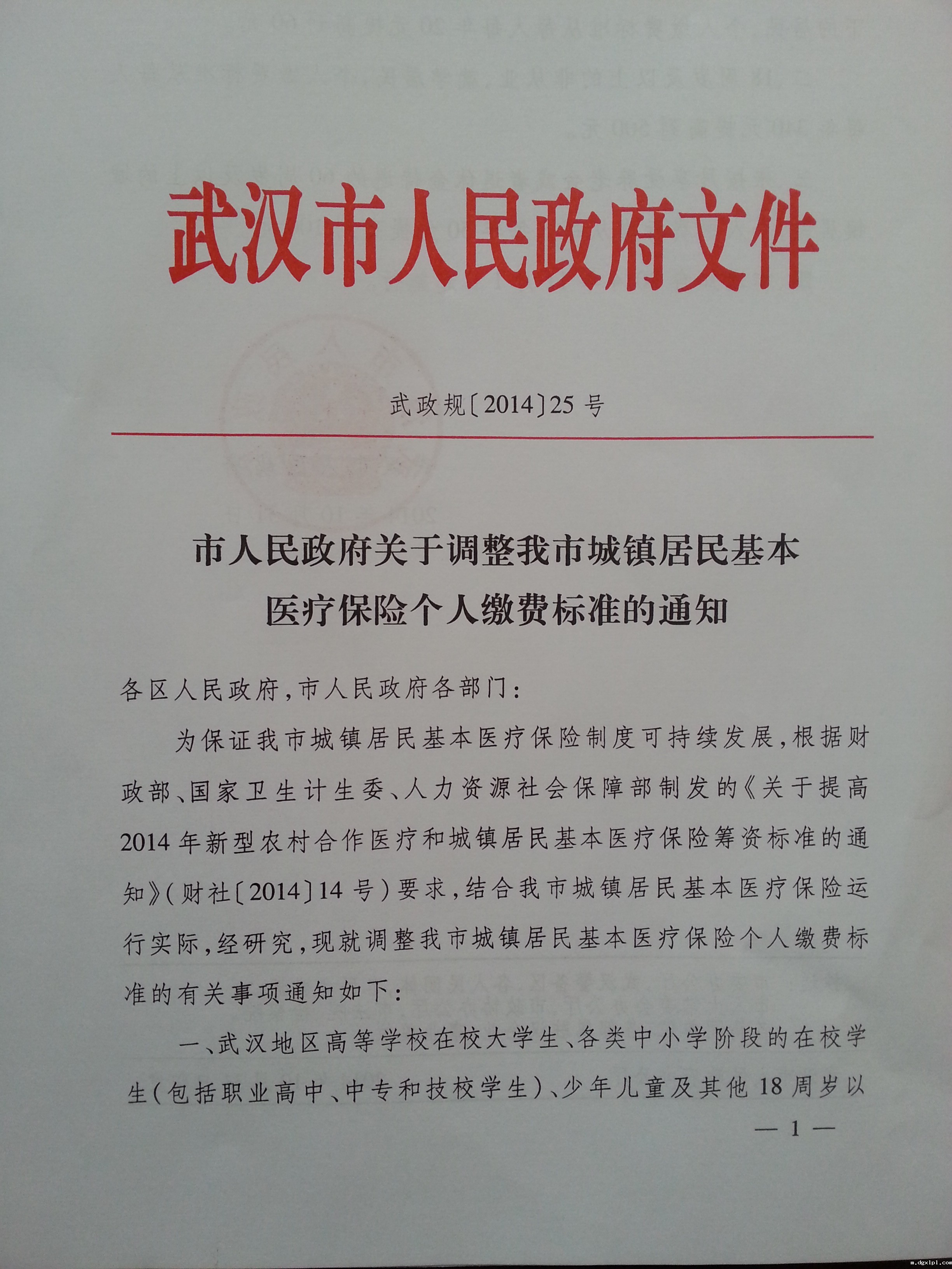 关于调整城镇居民医疗保险个人缴费标准的通知