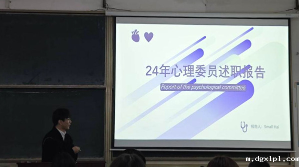 优秀心理委员代表张芯语同学发言,她说自己将在今后的工作中将更加关注班级同学的心理健康,定期组织班级同学进行心理活动,并宣传相关的心理知识让大家关注自身的心理健康状况。