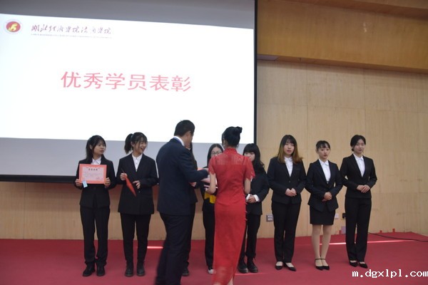汪韵老师宣读表彰文件,老师们依次为各班级优秀学员授予证书并拍照留念。优秀学员代表吴梦兰发言,讲述了开班两个月来的学习感受,对老师们的辛勤付出表示感谢。现场播放了银行班的学习剪辑展示视频。