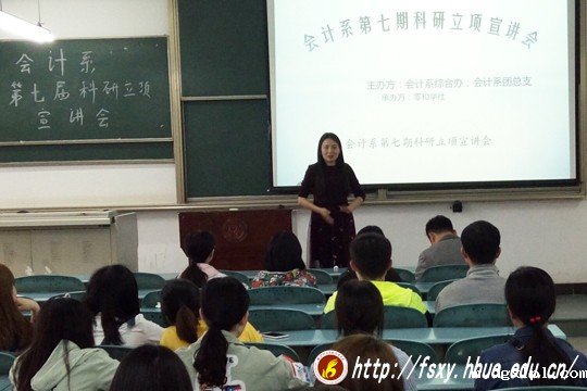 本网讯(特约记者 杨慧 舒诗淼)3月28日晚,会计系在教四201开展了会计系“科研立项”宣讲会。宣讲会邀请了会计系综合办副主任、团总支书记高志荣老师,零合学社指导老师杨慧担任主讲人。