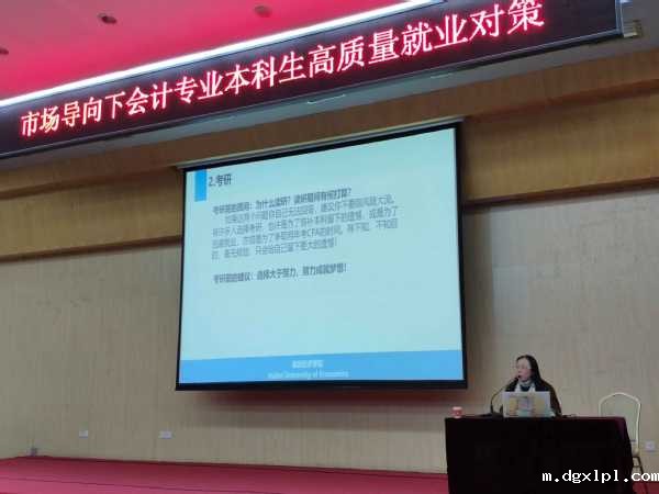 本网讯(通讯员 李星云)12月4日晚上6点半,会计系在大学生活动中心二号报告厅举行了主题为“市场导向下会计专业本科生高质量就业政策”的会计讲坛。此次会计讲坛幸邀了湖北经济学院张庆教授作为主讲嘉宾,JJB竞技宝平台官方下载院长王红教授到场致辞。讲座由会计系李粤雄老师主持。