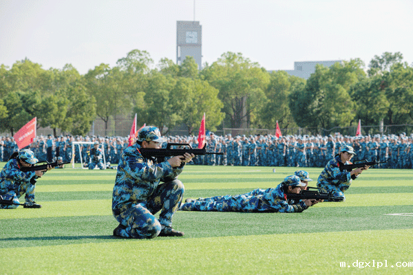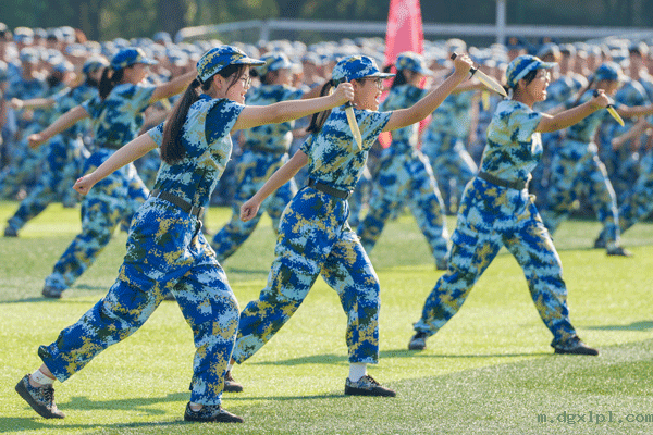 军训成果展示环节“特色方队表演”和“分列式表演”依次进行。匕首操方阵的女生们一招一式,整齐划一,行云流水,英姿飒爽。军体拳方阵,“哈”“嘿”的之声气势磅礴,拳脚挥舞刚劲有力。战术表演环节,在现场模拟的真实战场环境里,表演的队员们时而匍匐前进,时而冲刺行走,攻打与防守演练,展示了训练有素、战术有方的精神面貌。