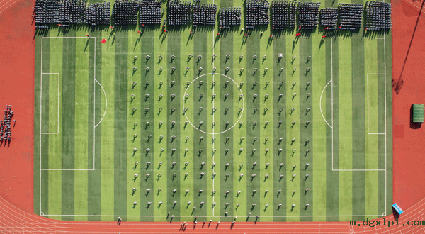 各系方阵依次分列式表演,在军训团的带领下,动作整齐、步伐矫健,以昂扬的姿态依次通过主席台前,接受检阅。