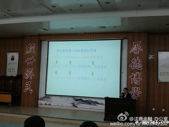 本网讯(特约记者 江丹丹 通讯员胡玉媛摄影 蒋懿慧 万娇)10月22日-23日在学校图书馆道德讲堂,金融系组织全体学生干部进行了为期两天的培训,主讲人有金融系综合办公室副主任周刚老师、鲁聪老师,金融系心理专干封静老师。培训由授课和素质拓展活动两部分组成,22日全天至23日上午为授课时间,23日下午全体学生干部在西区操场开展素质拓展活动。