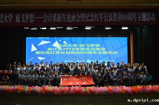 本网讯(通讯员 裴丽娜 欧阳雯)为让大一新生更好地融入到会计系这个大家庭,感受系部风采,解决新生对专业知识、师资力量、就业前景等方面的困惑,同时为纪念红军长征胜利80周年,增强学生的爱国情怀,会计系于10月14日18:30在大学生活动中心一号报告厅成功举办新生见面会暨纪念红军长征胜利80周年主题活动。参加本次活动的有学生工作部部长陶金永、会计系全体辅导员以及会计系2016级全体新生,现场气氛火爆,座无虚席。