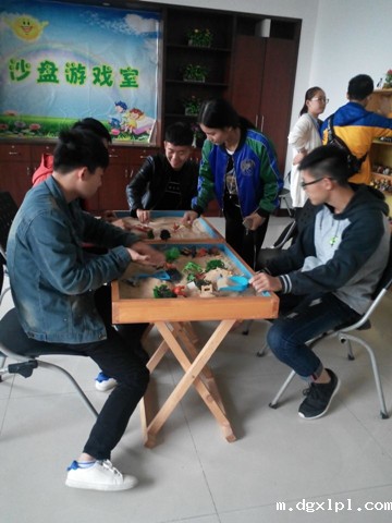 心理中心设有接待室、个体咨询室、团体辅导室以及沙盘游戏室,深受同学们喜爱的董明工作室也设在心理中心。接待室内墙上一角贴有同学对心委会的祝福,书架上整齐地摆放着多类心理指导的书籍。整体格局简单而不显单调,桌上柜上都有绿色的装饰植物,令人感到清新的同时又不失温馨。个体咨询室和团体辅导室分别为一对一,一对多的心理辅导室。沙盘游戏室的格局与其他辅导室大不相同,一角放着一只一人半高的坐着的毛绒大熊,学生可以随意与他玩耍,整个人坐在熊的怀里时能够自然而生一种温暖安心之感。房间正中是两个沙盘,一旁的柜子上有各式各样的沙具模型。借助沙盘游戏,来访者可以自由表达自我的内心世界,发挥“自我自愈力”,从而缓解紧张与压力,促进人格的发展。