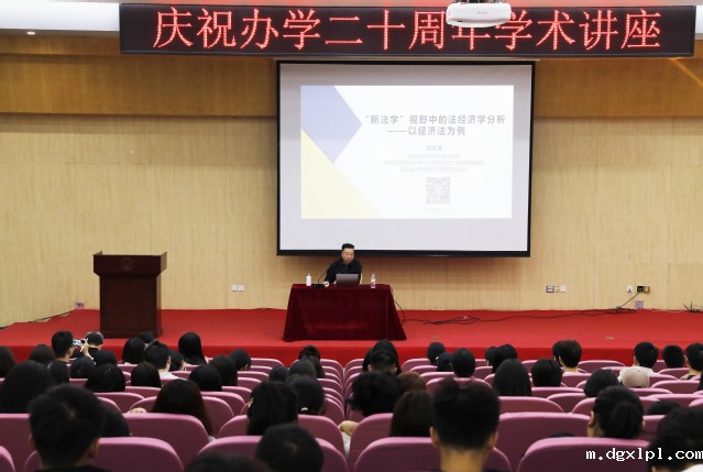 本网讯(通讯员 夏贤喆)为庆祝学院办学20周年,10月18日上午,我院特邀国家二级教授、国务院政府特殊津贴专家、中南财经政法大学经济法专业博士生导师组组长、湖北经济学院校学术委员会主任刘大洪教授在大学生活动中心二号报告厅作“‘新法学’视野中的法经济学分析”专题讲座。副院长龚振中教授主持,文法系全体老师及学生代表参加。