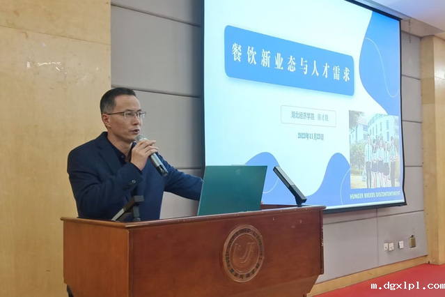 本网讯(通讯员张舒琪)11月23日晚,我院特邀湖北经济学院烹饪与营养学系系主任、中国烹饪大师陈才胜老师在大学生活动中心三号报告厅开展“餐饮新业态与人才需求”主题讲座。旅游与酒店管理系负责人徐会敏、150余名学生参加。