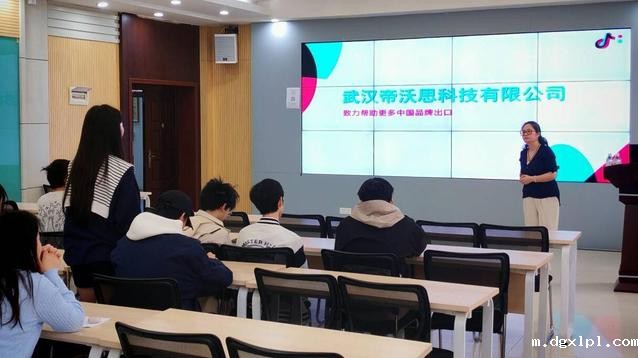 活动开始,公司法人、总经理金小玉通过PPT展示、播放宣传片等形式,向学生们详细介绍了公司的发展历程、企业文化、服务团队及未来发展战略,让同学们深入了解到帝沃思科技在跨境电商领域的突出成绩和广阔发展前景。